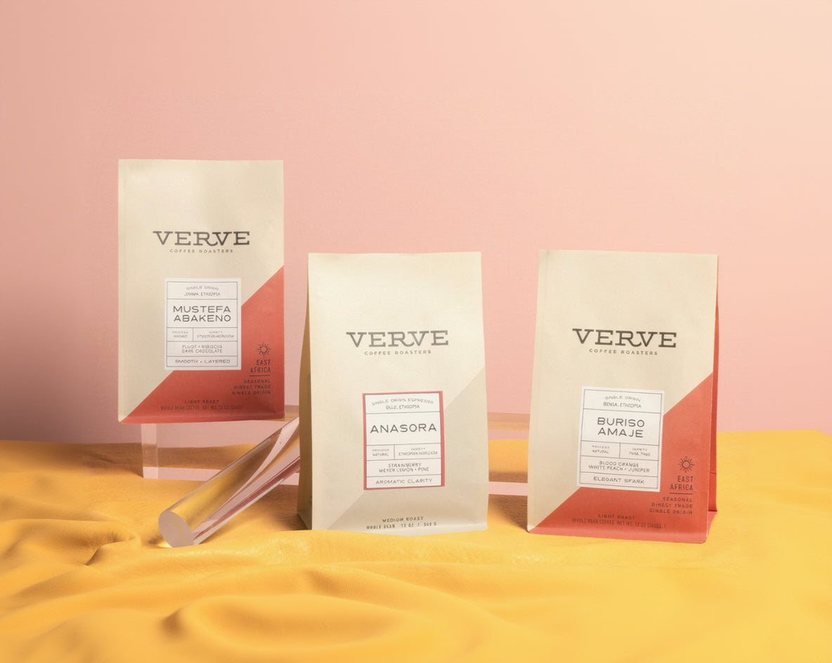 Anasora — sweet and expressive, built for espresso. Mustefa Abakeno — a washed Heirloom with balanced sweetness and structure. Buriso Amaje — a juicy natural bursting with fruit notes.