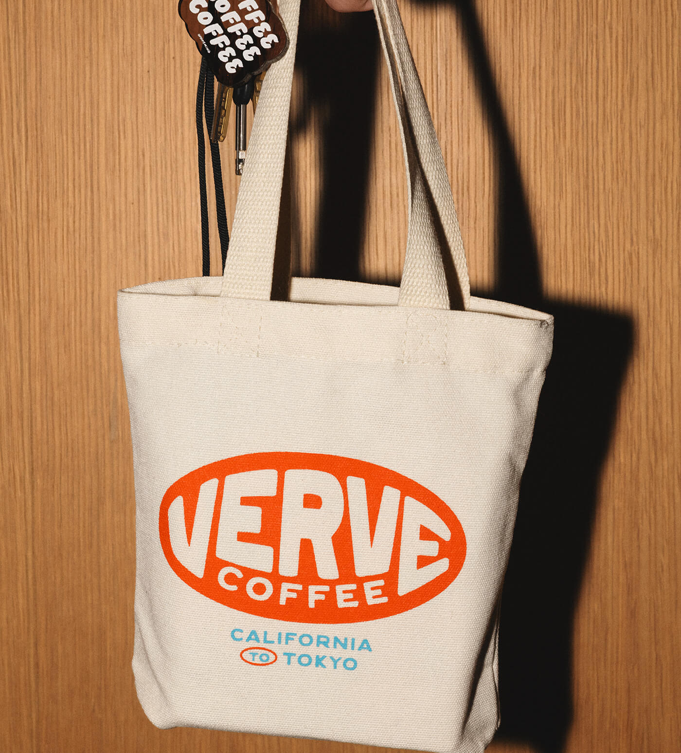 Small but mighty. This sturdy 100% cotton tote fits your daily essentials while showing off a bold Verve logo inspired by California-Tokyo design.